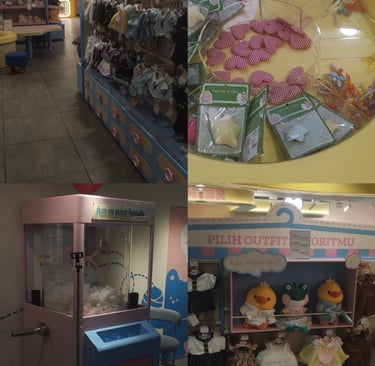 Tempat ini cocok banget loh, buat kamu yang mau cari spot buat quality time bareng pasangan, teman, atau hts-an kamu. Ini tempat bukan cuman sekedar beli boneka, tapi kita buat boneka sesuai keinginan kita sendiri.