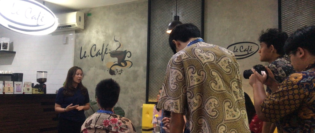 Setelah sesi workshop tiramisu cake, lanjut ke sesi Le Cafe buat sesi berikutnya bareng Kak Valdo. Kali ini workshop latte art, teman - teman dari SMA Pangudi Luhur Cikarang berkesempatan menuang susu panas langsung ke espresso dan bikin pola di atasnya.