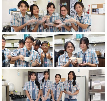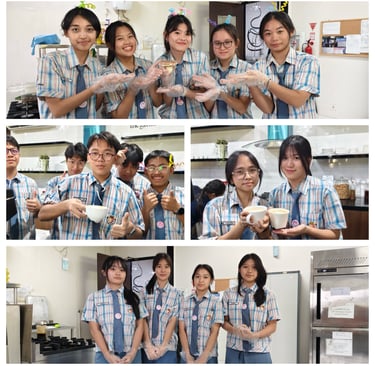 Setelah selesai, teman - teman dari SMA Pahoa mulai praktek secara langsung membuat dua olahan tersebut. Mereka juga diberikan kesempatan untuk mencoba mencicipi hasil buatan mereka sendiri. Secara nggak langsung, mereka juga belajar ilmu dasar dalam dunia pastry, dan pentingnya kerjasama tim dan kebersihan dapur dalam dunia kitchen.