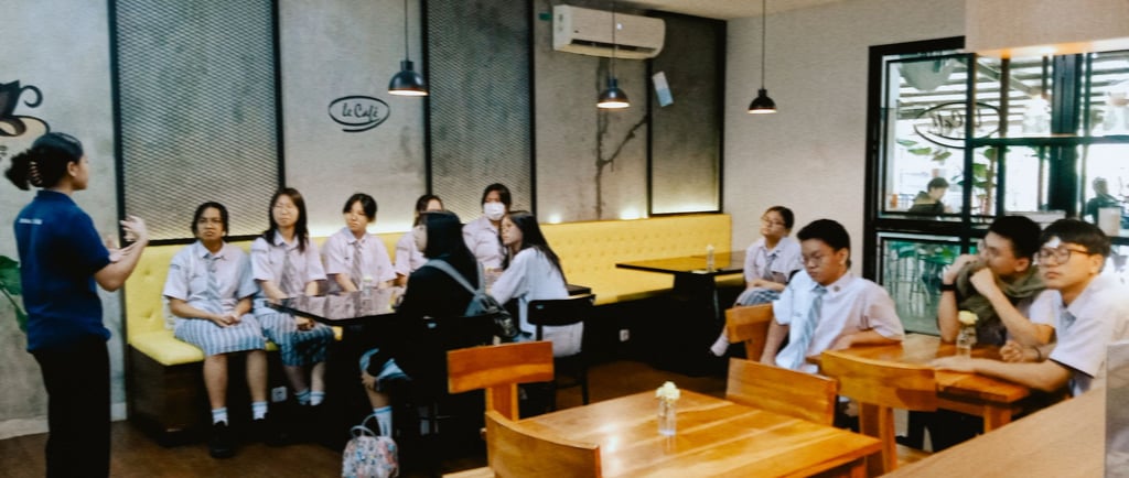 Tanggal 12 Agustus 2025 jadi hari yang tidak terlupakan buat Prodi Pariwisata Atma Jaya karena kita kedatangan tamu dari SMA Stella Maris BSD. Di sini mereka mendapatkan pengalaman lewat workshop bikin tiramisu cake dan latte art lengkap dengan sesi pengenalan seputar dunia pariwisata bareng kakak - kakak dari kampus.