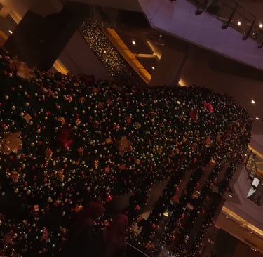 Saat berkunjung saat weekday pun suasananya udah padat, namun tidak sampai mengular terlalu panjang. Banyak yang rela naik dan turun sampai berkali - kali demi dapat mengabadikan momen foto maupun video dengan angle terbaik. Ada juga security yang menjaga ketertiban di area eskalator tersebut sehingga alurnya tetap nyaman walaupun ramai. Menariknya, dekorasi natal ini bukan hanya sekedar untuk dilihat saja, tapi untuk dilewati menciptakan sensasi immersive yang mungkin jarang ditemukan di dekorasi Natal mall lainnya.
